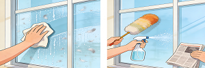 正确的操作步骤其实很简单,首先做好预处理:准备一把干净的鸡毛掸子、干燥的微纤维布或静电除尘纸。先用鸡毛掸子轻轻扫掉玻璃表面的浮尘,尤其是窗框缝隙、玻璃边缘的积灰;对于玻璃上的顽固干污渍,比如鸟粪、干涸的水渍,用干燥的微纤维布蘸少量小苏打粉轻轻擦拭,将其打磨成粉末后扫掉,注意全程不要沾水。这一步要做到玻璃表面用手触摸没有粗糙感,才算预处理到位。